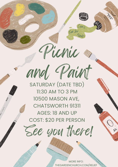 I love spending time outdoors and I love painting. Picnic and Paint is a great way to enjoy the sun, eat some good food, and destress! I want to extend the invite to join me on a beautiful picnic. Lunch, snacks, and art supplies will be provided.