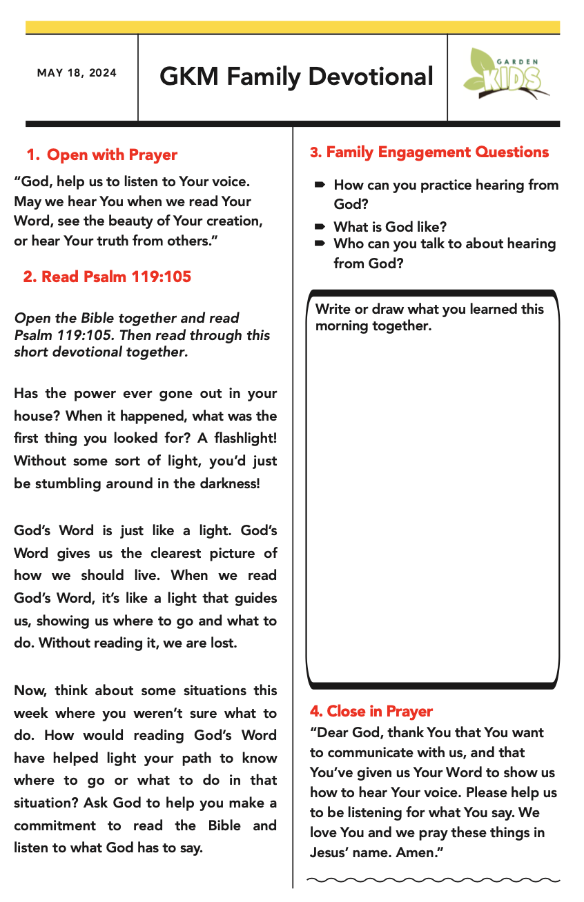 Families that have kids in GKM, a family devotional have been prepared for you.